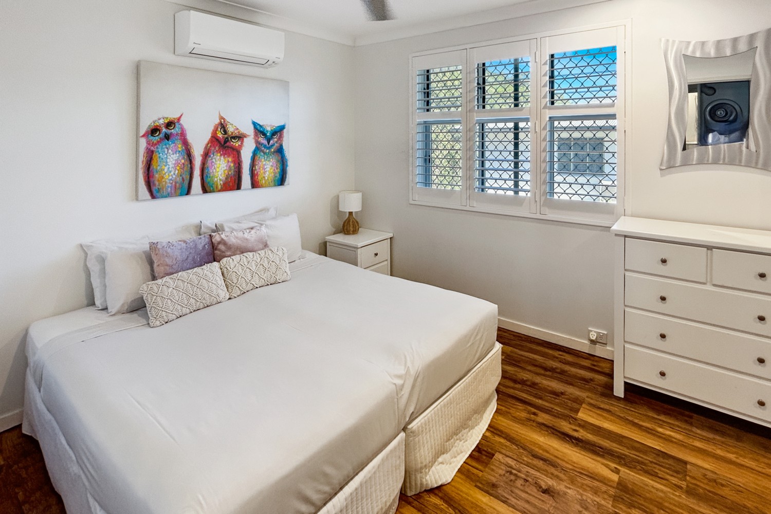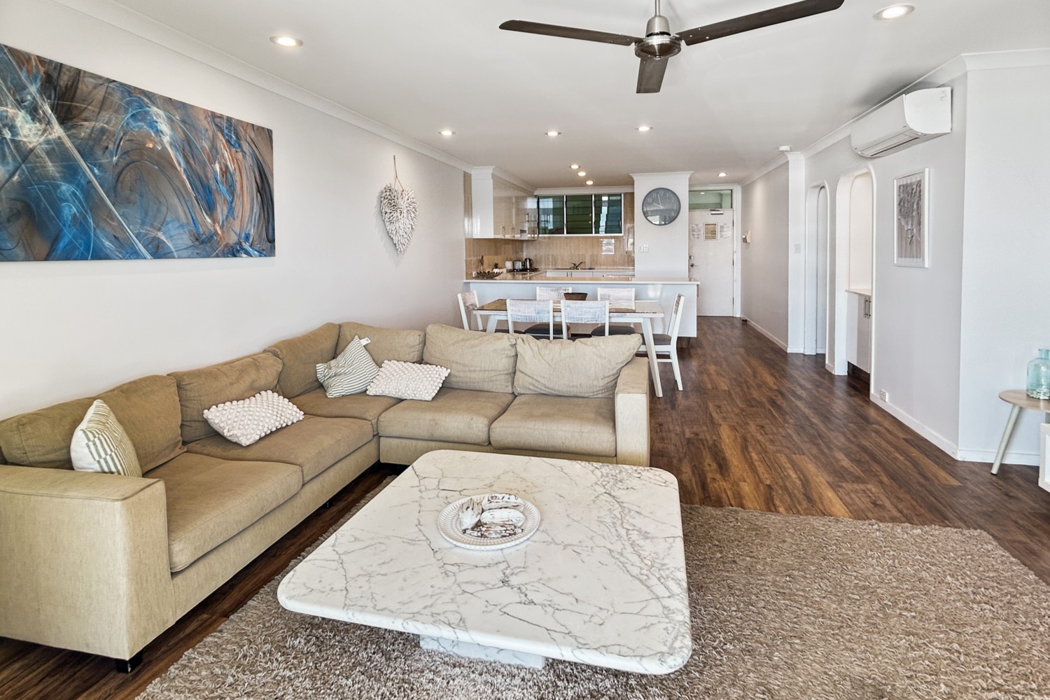 Located on the upper floor this 2 bedroom apartment features a large enclosed balcony overlooking Catseye Beach and enjoys timeless views out to the Coral Sea.