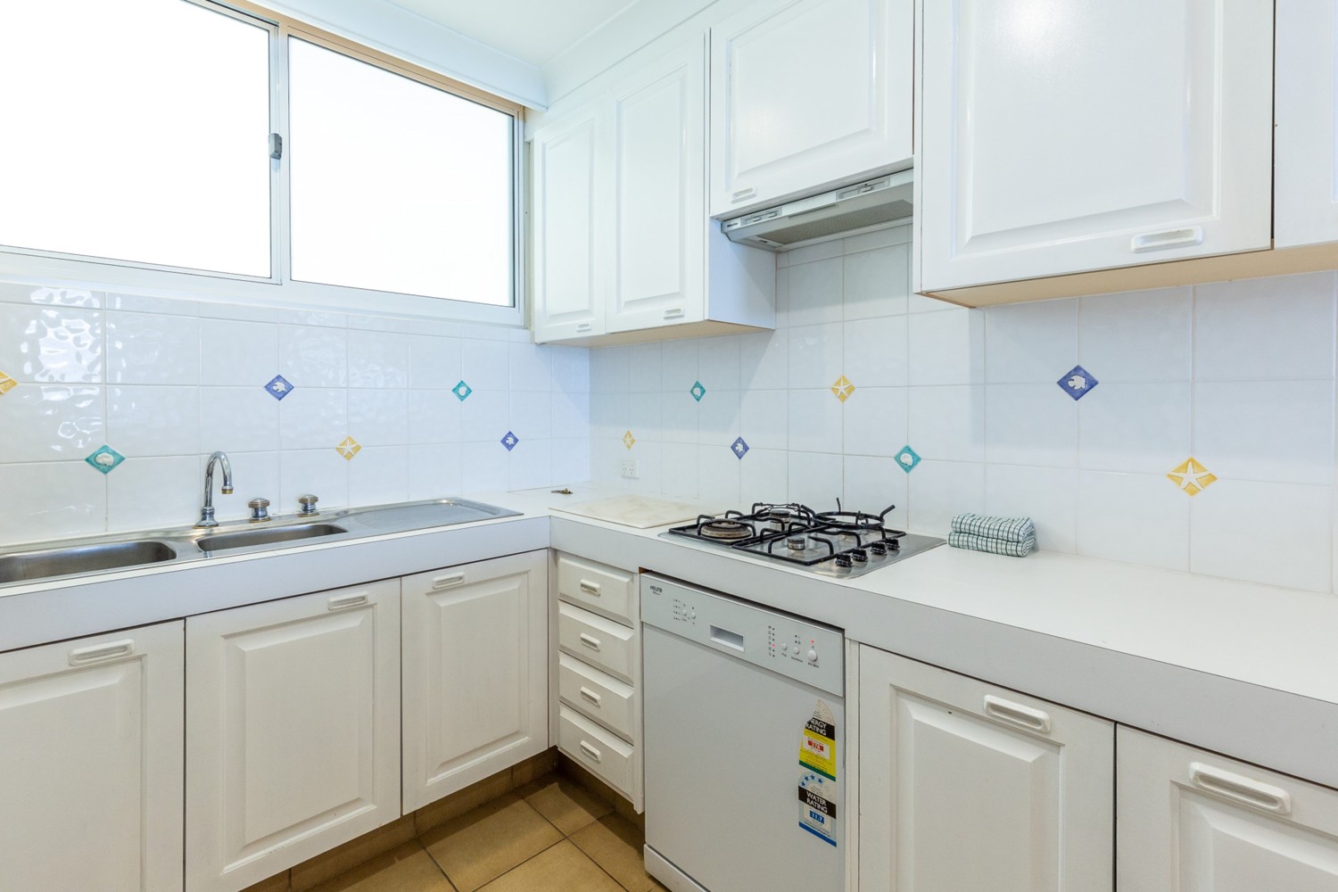 - Modern self-contained kitchen with gas cooktop, dishwasher and microwave.
