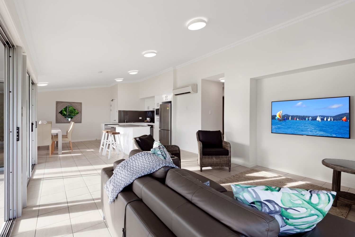 - Large living area that opens out onto the outdoor patio with a BBQ.