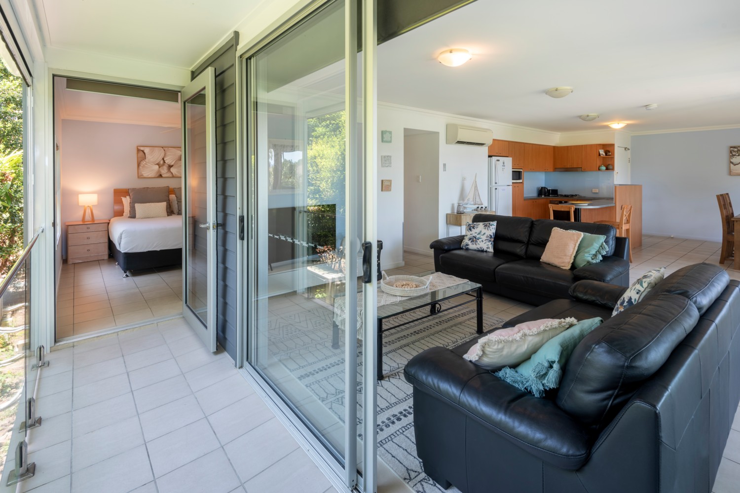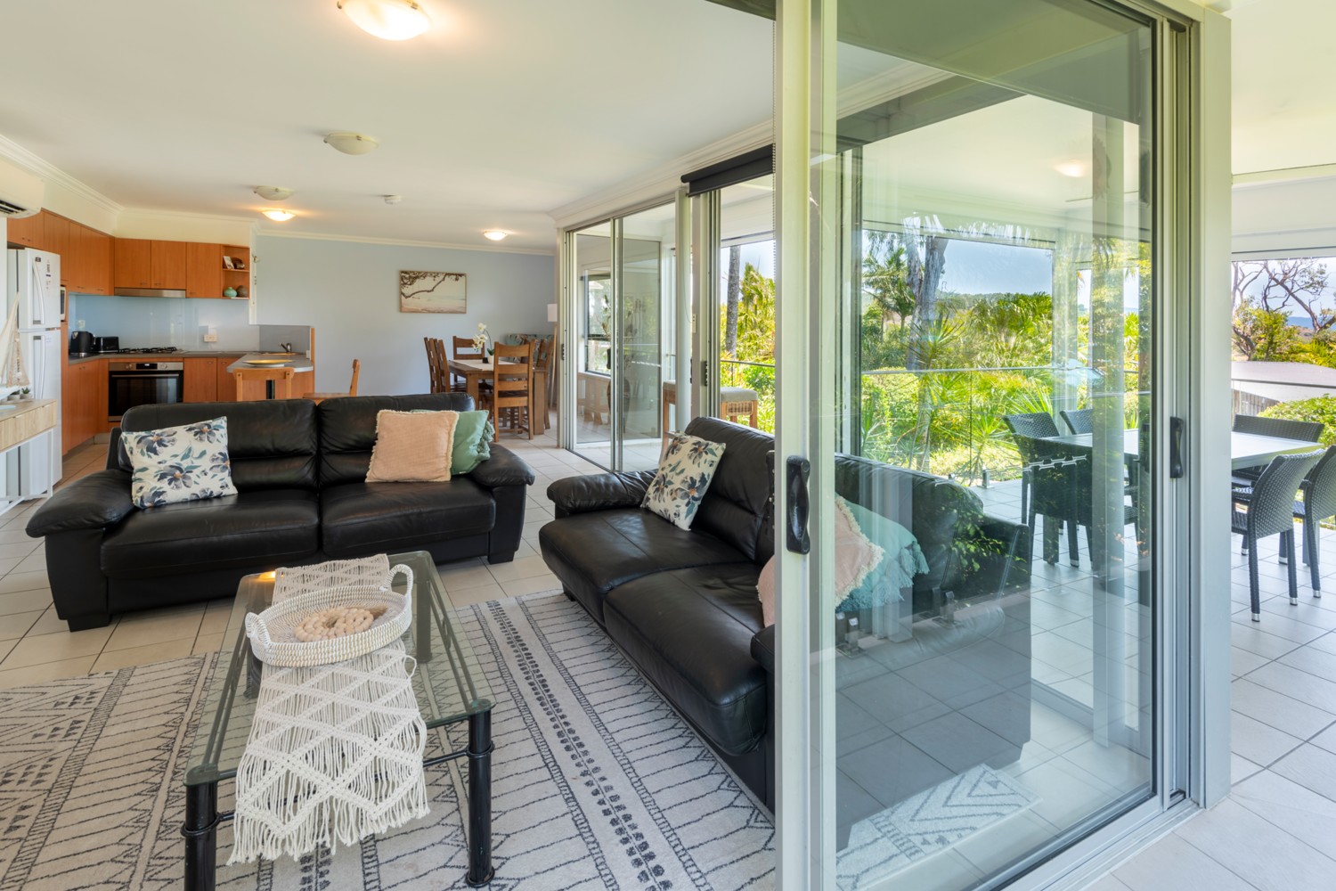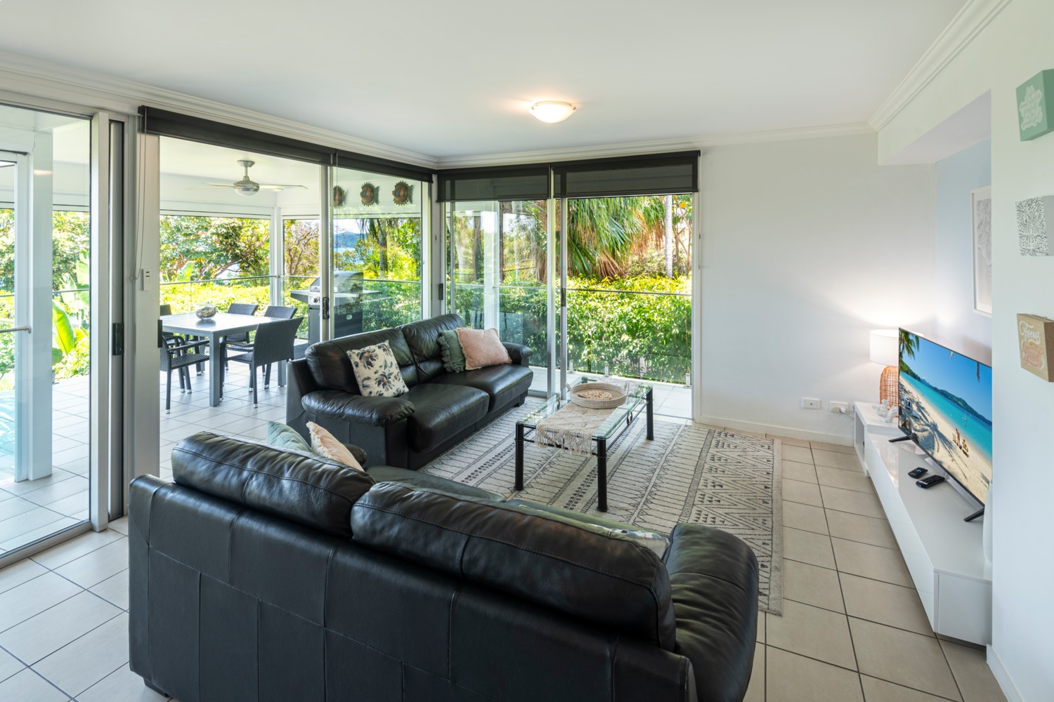 - Large living area that opens out onto the outdoor patio with a BBQ.