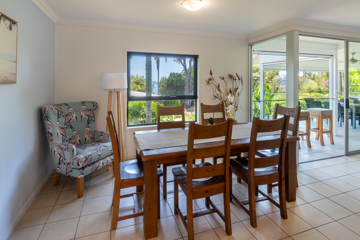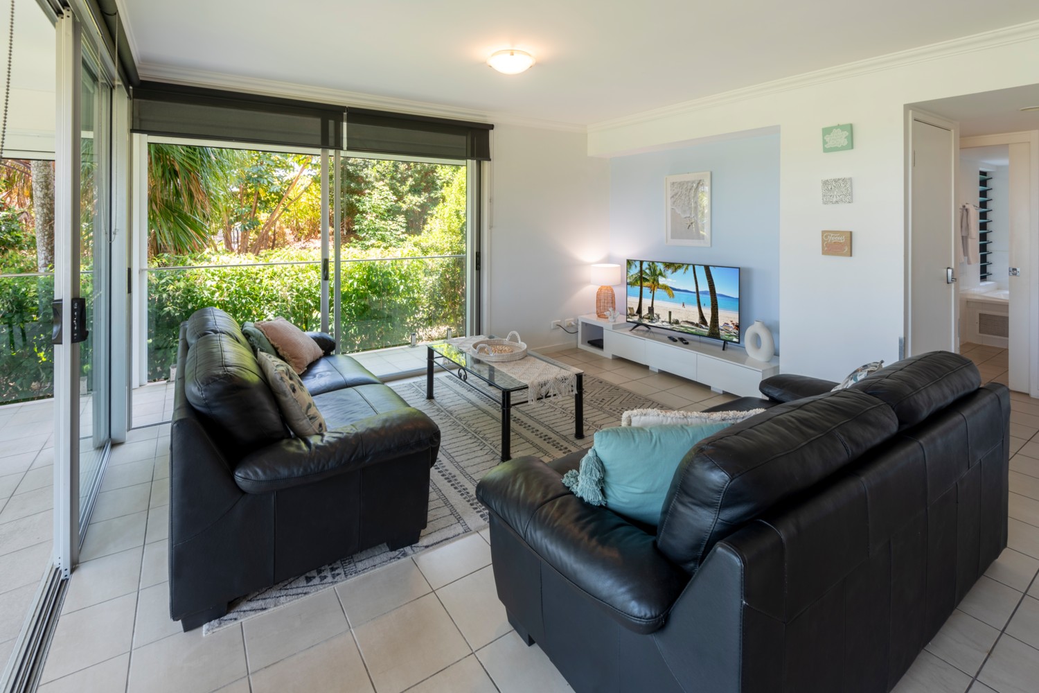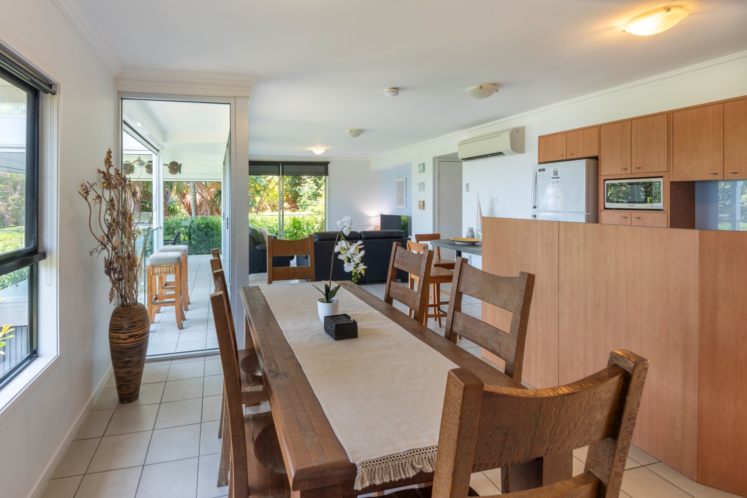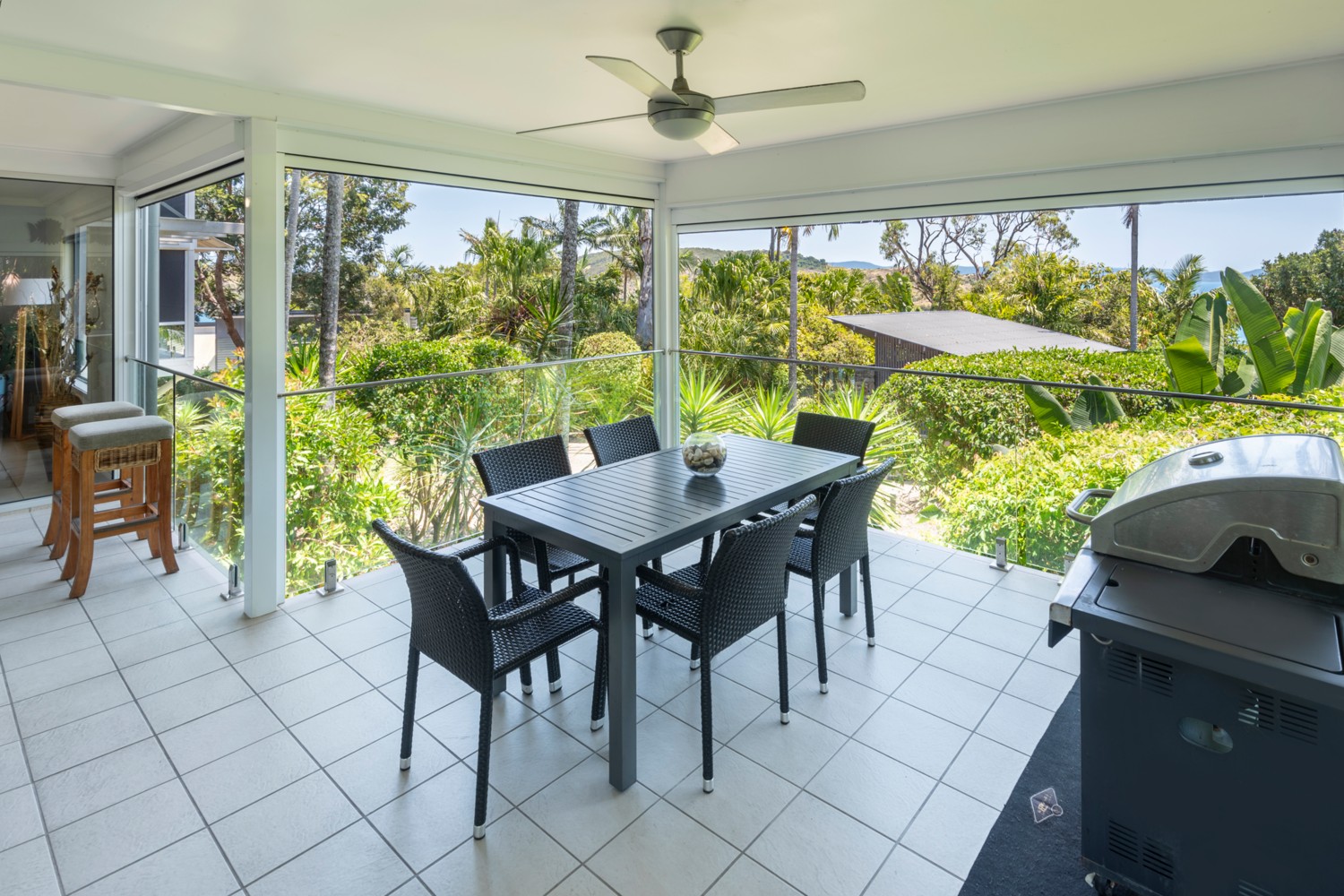 - Large living area that opens out onto the outdoor patio with a BBQ.