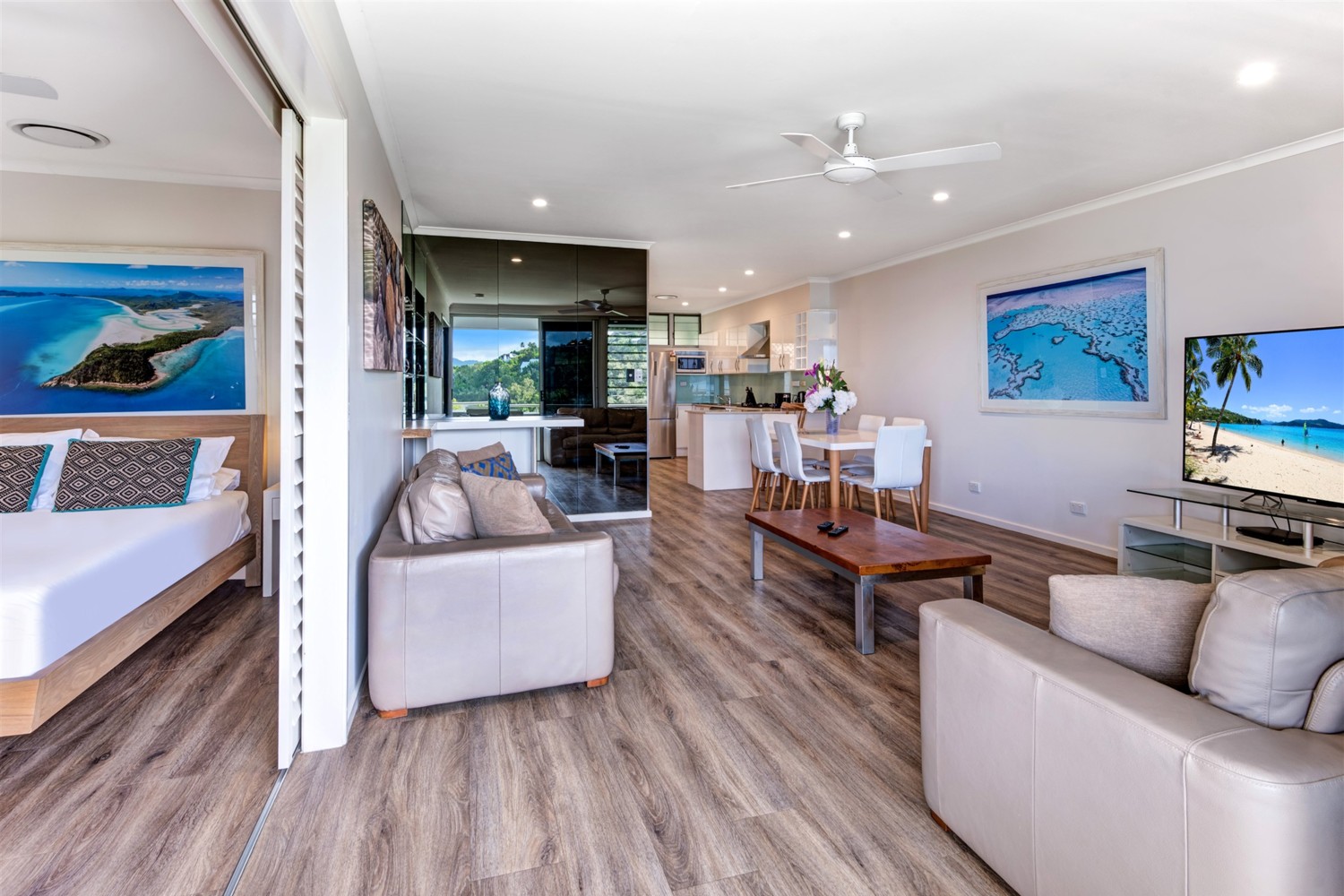 North-facing means you have the best aspect and enjoy the views across Whitsunday Island all day long and the lights of Catseye Bay at nighttime.